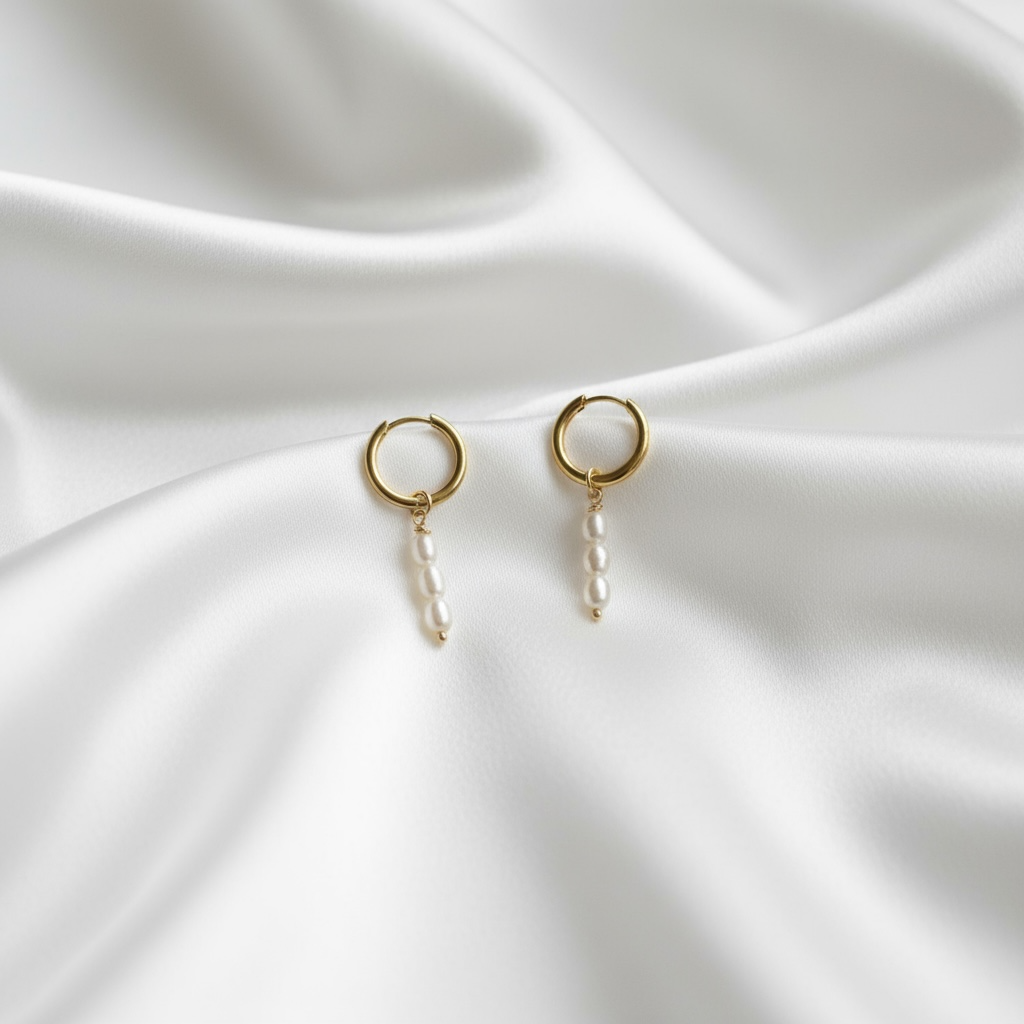 Creole mit Anhänger bestehend aus Süsswasserperlen. Creole aus Edelstahl 18k vergoldet.