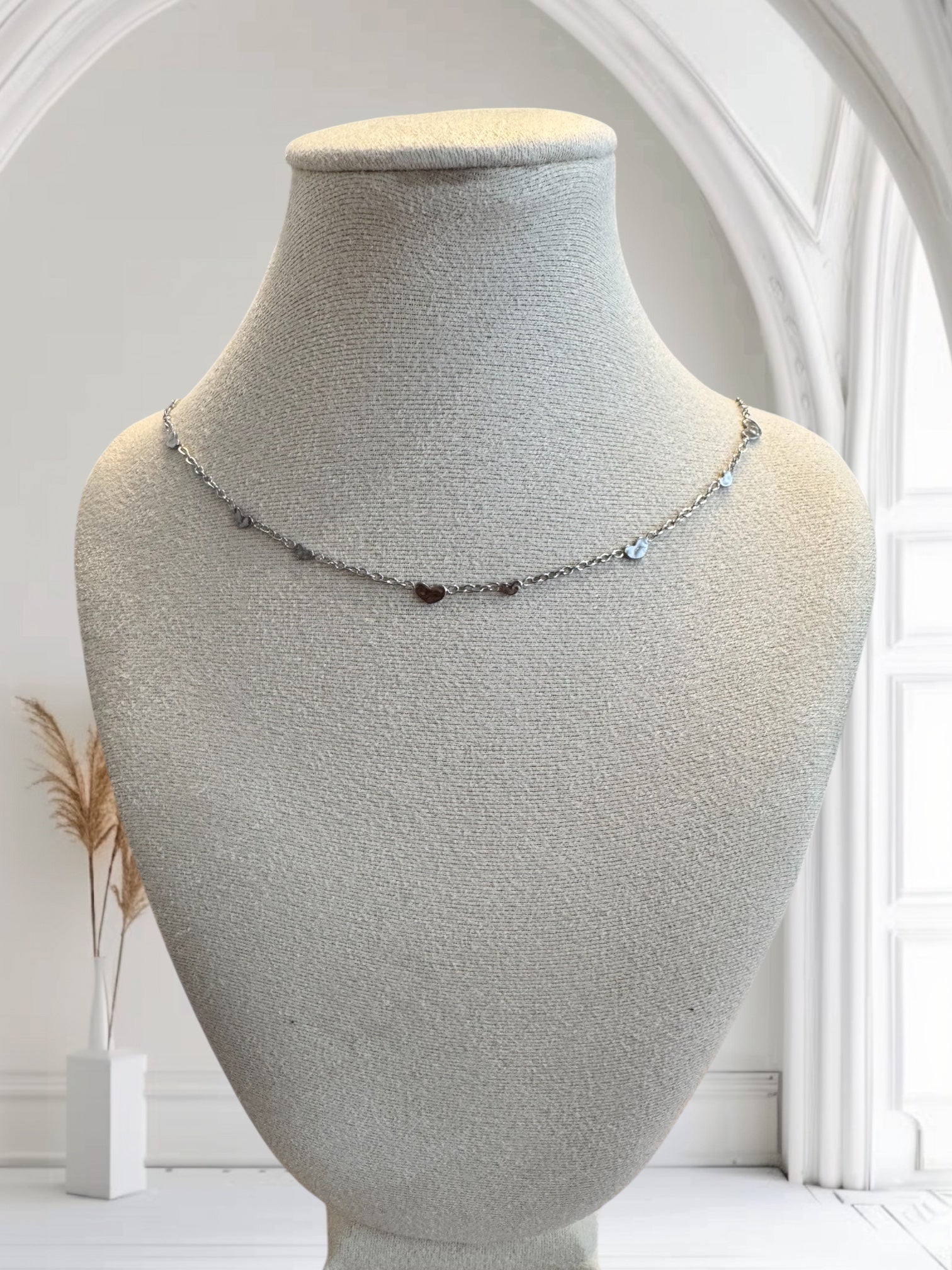 Zarte Halskette mit Herz-Elementen. Aus Edelstahl.