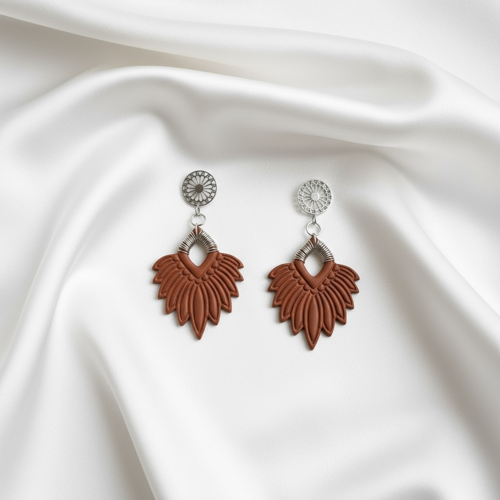 Ohrring aus Polymer Ton rostfarben. Drahtdetails. Ohrstecker aus hautverträglichem Edelstahl. ULTRALIGHT!