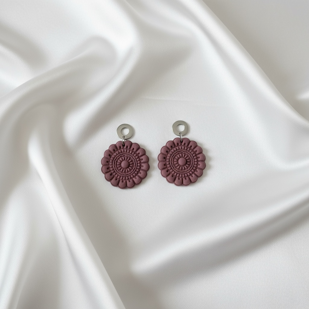 Ohrring mit Anhänger aus Polymer-Ton mit Mandalmuster mauve-farben. Ohrstecker aus Edelstahl.