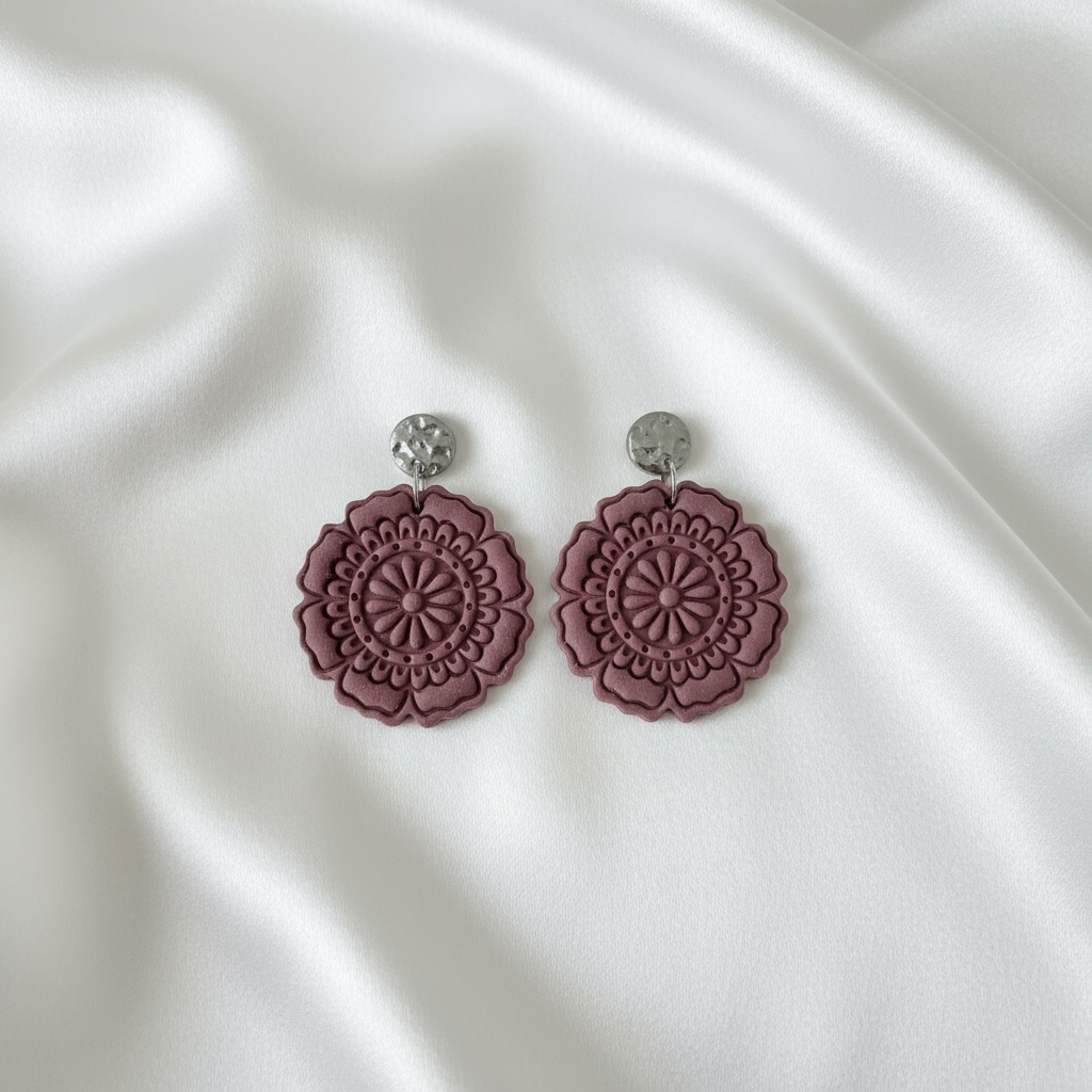 Ohrring mit Anhänger aus Polymer-Ton mit Mandala-Muster mauve-farben. Ohrstecker aus Edelstahl. ULTRALIGHT!