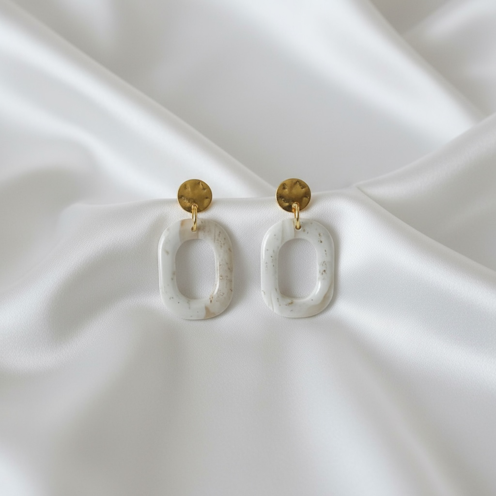 Ohrring mit Anhänger aus Polymer-Ton weiss-creme farben mit echtem Blattgold. Ohrstecker aus Edelstahl 18k vergoldet. ULTRALIGHT!