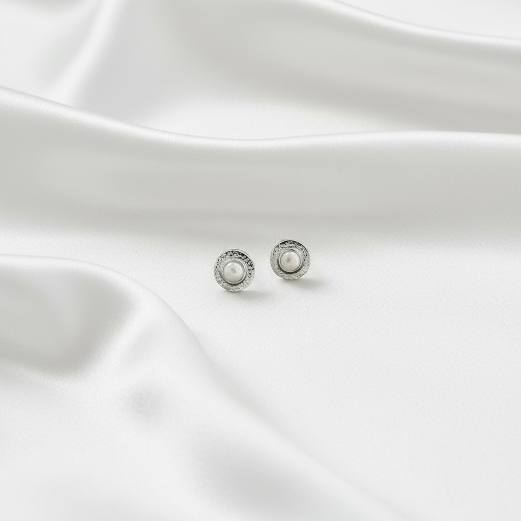 Edler Ohrstecker aus Edelstahl. Gehämmerte Optik. "Stein" aus Polymer Ton creme-weiss mit echtem Blattsilber. Ob für den Büroalltag oder im Ausgang, mit diesem hübschen Ohrstecker bist du immer top gestylt. Jedes Stück ein Unikat.